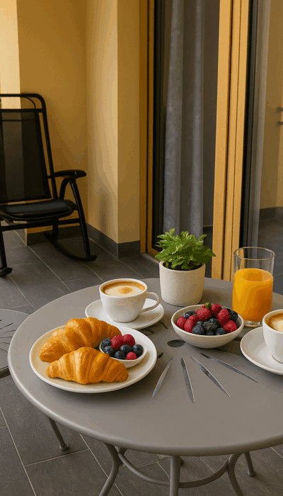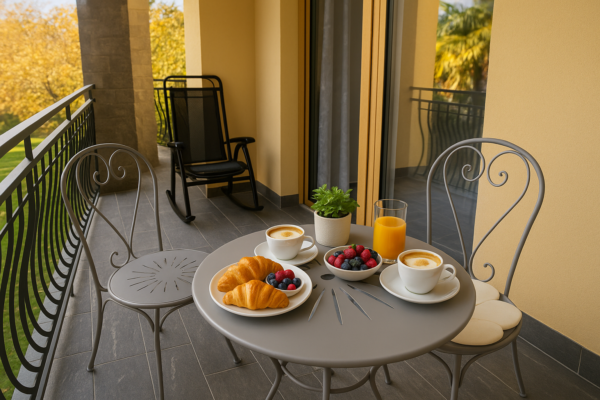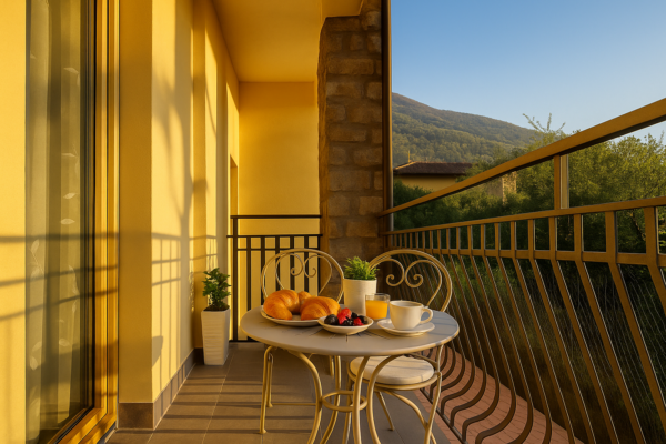 – Private balcony with table and seats where you can enjoy your breakfast looking at the beautiful mountains and the garden